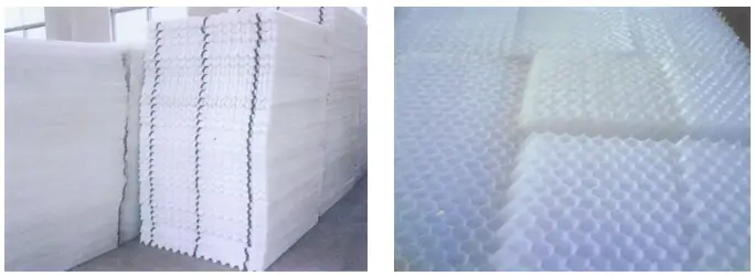 我厂生产的六角形蜂窝填料有斜管和直管两种形式。材质有聚丙烯和玻璃钢二种。